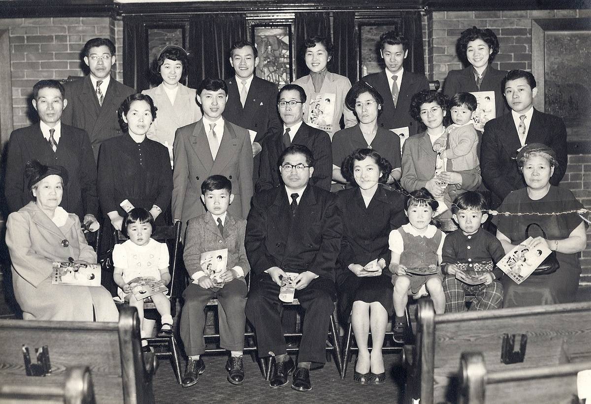 In April 1955, the formal church organization was completed with 31 members. Among them were Amy Okimi, Kasue Okamura, Kyuoko Sakaguchi, George Sakurai, George Okamura, and David Okamura.